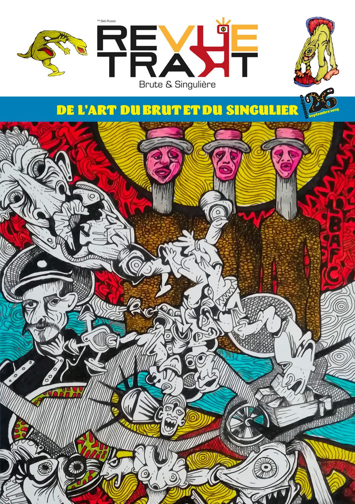 Ils sont de plus en plus nombreux à vouloir être édité(e)s au sein de notre magazine. Nous apportons au fil des numéros de nouvelles rubriques créées et imaginées par les artistes eux-mêmes. Notre Revue est déjà présente sur les lieux et les musées les plus connus d’art brut en France et à Paris. Et nous œuvrons pour qu’elle le soit encore plus. « J’ai imaginé cette revue il y plus de 20 ans, j’ai laissé le temps au temps, et, c’est un jour en parlant avec un ami avec qui nous avions déjà réalisé une petite revue à Dijon, que l’idée nous a effleuré, mais sans la Créer. 2 ans plus tard je posais les premières fondations de la Revue. Trakt et depuis ben, depuis nous verrons ... ». Sébastien Russo